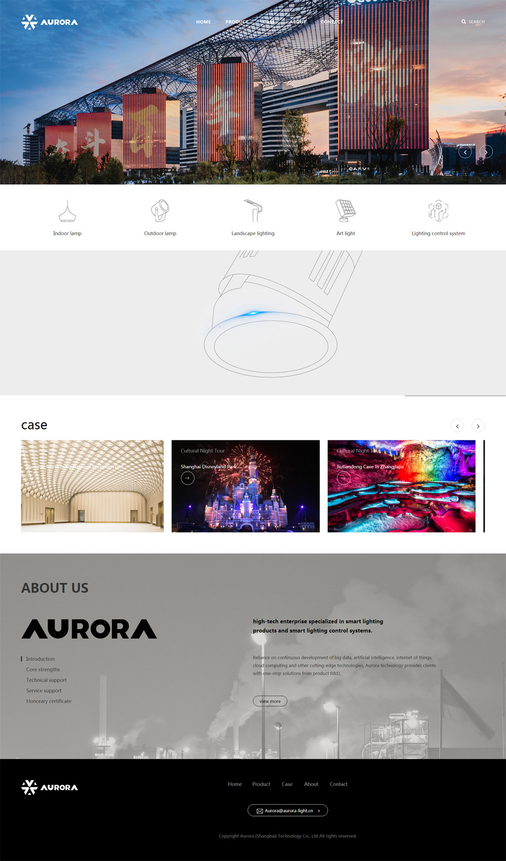 Aurora (Shanghai) Technology Co , Ltd is committing to providing customized smart lighting products and reliable smart lighting control systems for global clients With leading innovative research and development capabilities, excellence quality of product management, and “client always first” service guarantee, Aurora(Shanghai)is moving towards a world-class Chinese brand